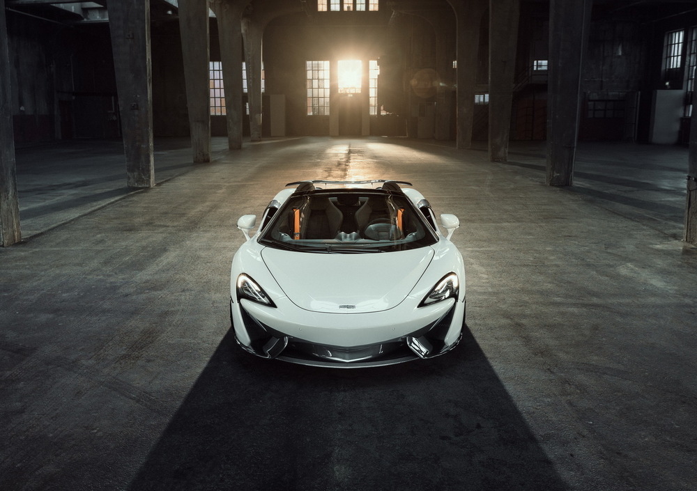 Lo spoiler anteriore conferisce alla 570S Spider un aspetto ancora più distintivo e atletico, che unisce look raffinato e massima efficienza aerodinamica: la forma della componente in carbonio è stata ottimizzata in galleria del vento per ridurre il sollevamento dell'asse anteriore alle alte velocità e assicurare maggiore stabilità di guida.
