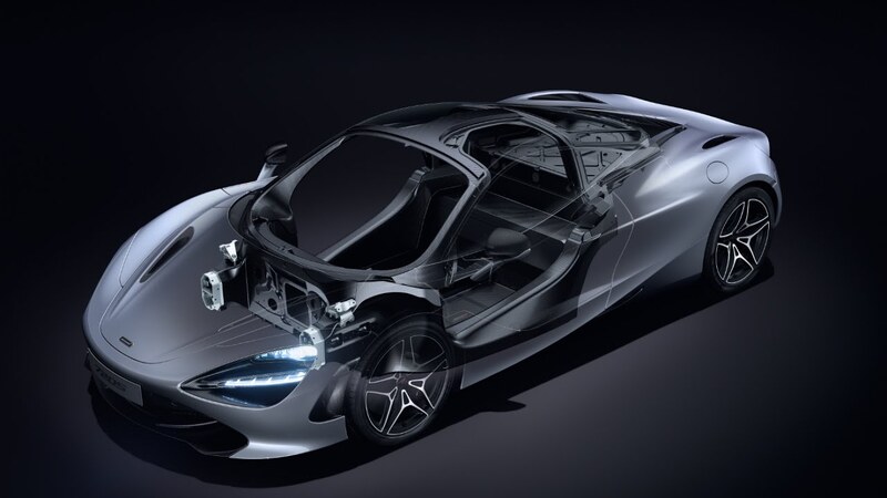 Parlando di tecnica adesso troviamo il Monocage II come cellula centrale che incorpora anche la struttura del tetto e permetter di togliere ogni traccia di metallo dai montanti, contribuendo ad abbassare il baricentro. L’intera struttura pesa poco più di un uomo adulto e consente di raggiungere valori di rigidezza altissimi. Il motore come accennato è un V8 turbo da 4 L con 720 CV e 770 Nm di coppia. Adesso le bancate vengono controllate elettronicamente, così come l’attuazione delle turbine, per azzerare il turbo lag. Il risultato è un’accelerazione fulminante e progressiva, resa ancora più violenta grazie al doppia frizione a 7 rapporti con cambiate seamless. Il bello è che per salire o scendere di marcia è possibile usare lo stesso paddle, dato che il sistema è interconnesso tramite bilanciere.