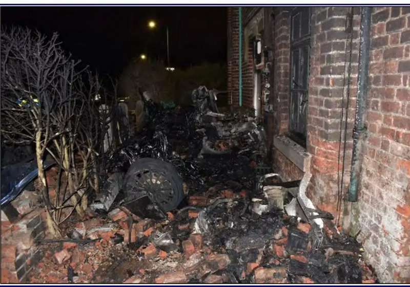 Secondo il rapporto delle autorità, Hocking stava viaggiando a una media di 91 mph, cioè quasi il triplo del limite, quando ha perso aderenza e ha centrato l’abitazione con il V8 della McLaren ancora in piena potenza.