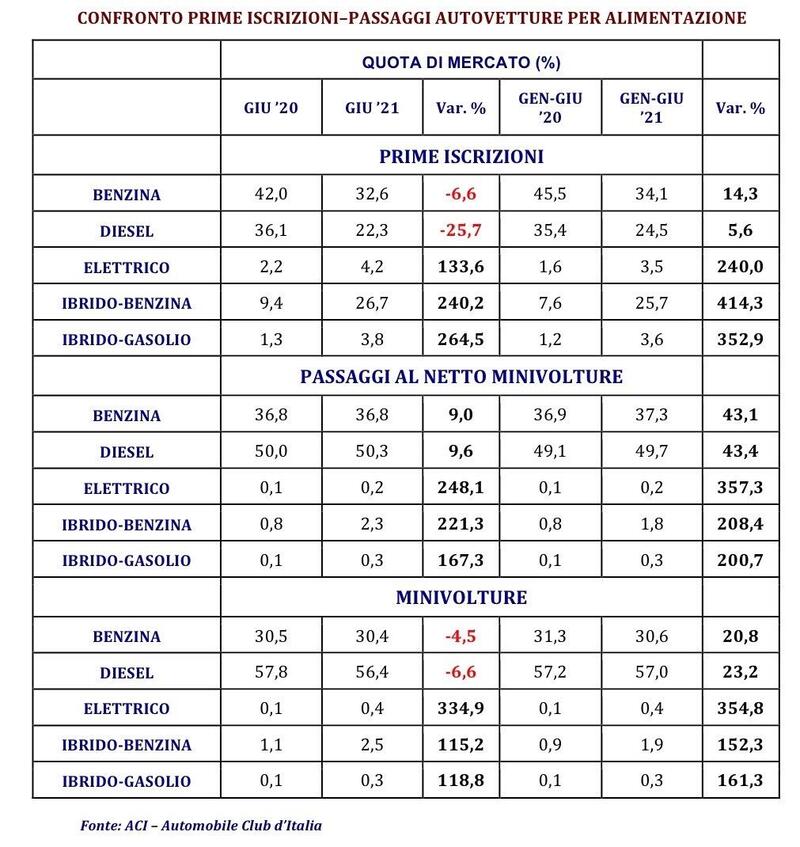 I dati sono riportati nell'ultimo bollettino mensile “Auto-Trend”, l'analisi statistica compiuta dall’Automobile Club d’Italia sui dati del PRA, consultabile sul sito www.aci.it.