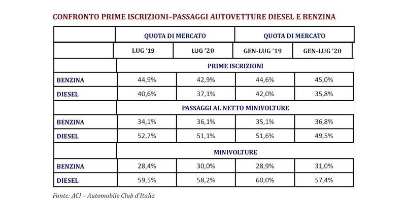 Questo trend trova riscontro anche nelle prime iscrizioni, dove a dispetto del pesante calo complessivo generale, a luglio si sono registrate variazoni positive del 28% per le auto elettriche, del 125% per le ibride a benzina e del 41,6% per le ibride a gasolio.