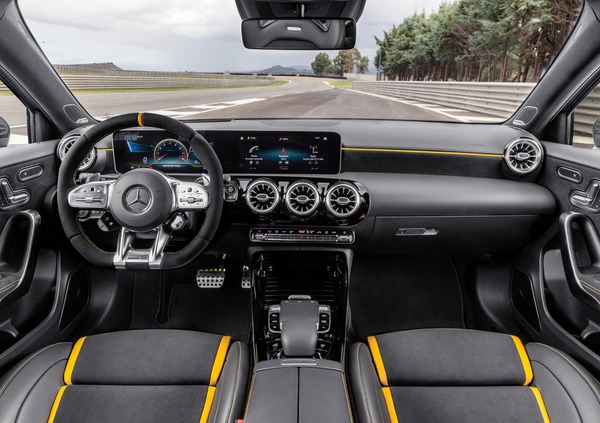 La Mercedes-AMG A 45 S e la CLA 45 S, invece, arrivano ad erogare fino a 421 CV di potenza e raggiungono una coppia massima di 500 Nm. Lo scatto da 0 a 100 km/h è coperto in 3,9 secondi dalla A 45 S e in 4,1 secondi per la CLA 45 S. La velocità di punta, autolimitata, è di 270 km/h per tutte le versioni.