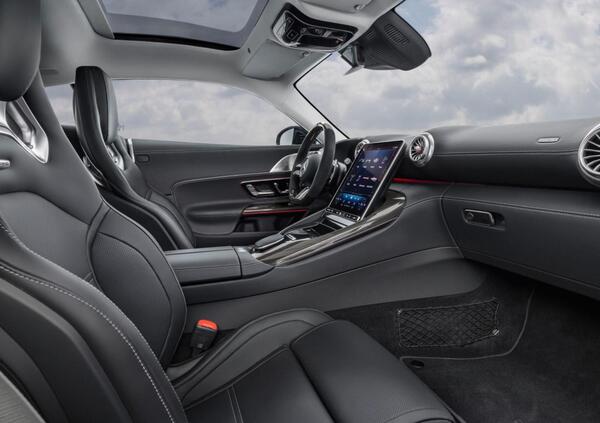 Dentro l’abitacolo, il conducente è avvolto dai sedili - regolabili elettricamente - sportivi AMG e rivestiti da pelle Nappa (monocolore o bicolore) o dalla combinazione pelle Nappa e microfibra, caratterizzate dal contrasto delle cuciture in giallo o rosso. Inoltre, all’interno dell’auto non manca il display per l’infotainment da 11,9 pollici e, in Italia, sono disponibili due diversi allestimenti: Premium e Premium Plus.