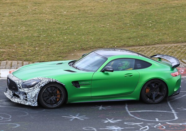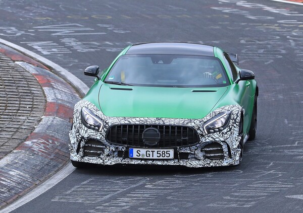 La Casa di Stoccarda ha portato in pista, sul circuito del Nürburgring, la AMG GT-R e fino a qui, nessuna novità. Ci è caduto l’occhio però sul paraurti anteriore camuffato, quindi Mercedes ha in programma di lanciare un nuovo restyling o, a giudicare dai nuovi dettagli, la versione Black Series.