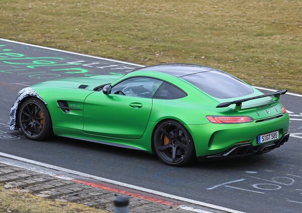 Come potete vedere dalle foto, le prese d’aria frontali sono uguali alla versione attuale ma compaiono delle alette aerodinamiche ai lati del paraurti e al posteriore c’è un alettone più pronunciato. C’è sempre il cattivissimo estrattore dell’aria e lo scarico centrale sdoppiato. Probabilmente non ci sono modifiche al motore V8, quindi è possibile che la nuova versione della Mercedes-AMG GT-R arrivi già quest’estate o in autunno.