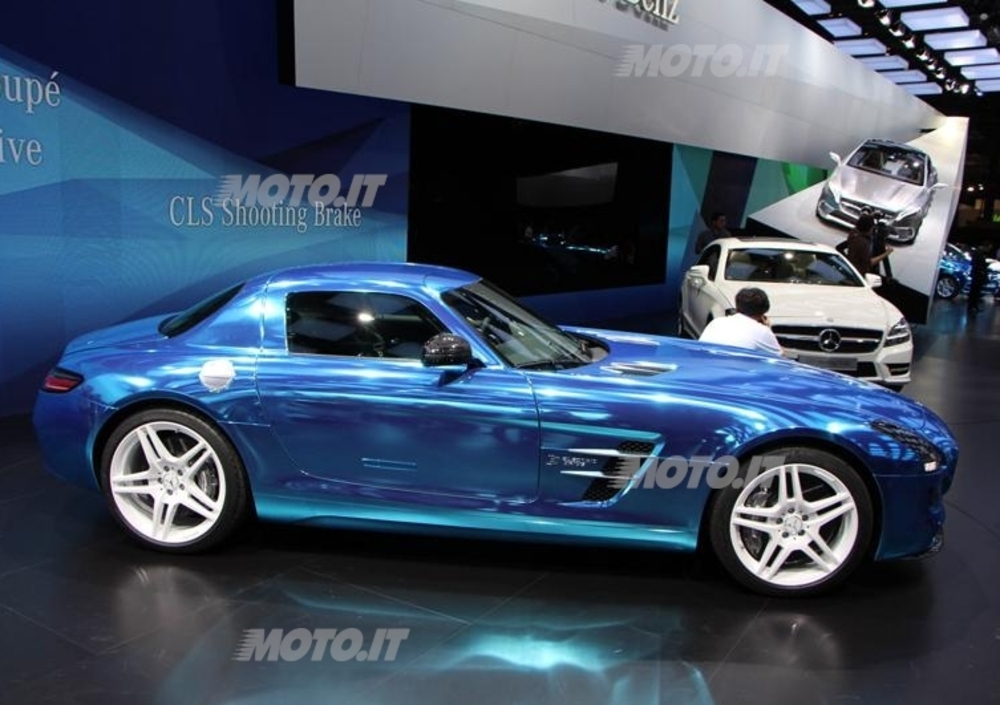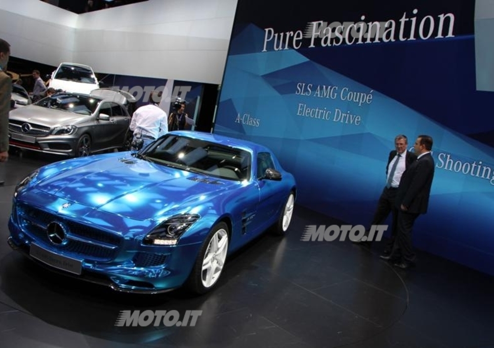 Prima fra tutte spicca la nuova Mercedes-Benz SLS AMG Electric Drive, supercar supersportiva a zero emissioni dotata di una tecnologia derivata dalla Formula 1, rappresentando così la più potente vettura AMG ad alte prestazioni di tutti i tempi. Nello stand c'è spazio per mostrare anche la Mercedes-Benz Classe B Electric Drive concept, una vettura che attualmente si trova ancora allo stadio di prototipo. Si tratta di un particolare esemplare alimentato da un powertrain 100% elettrico che consente di viaggiare a zero emissioni locali. La spinta propulsiva deriva da un motore elettrico da 100 KW che corrispondono a 136 CV, mentre la coppia si attesta a 310 Nm e l’autonomia a circa 200 Km.