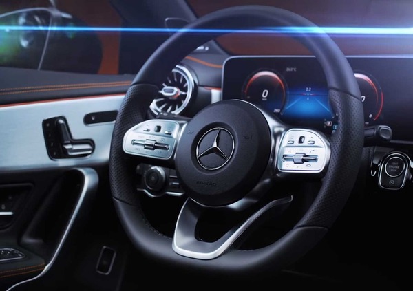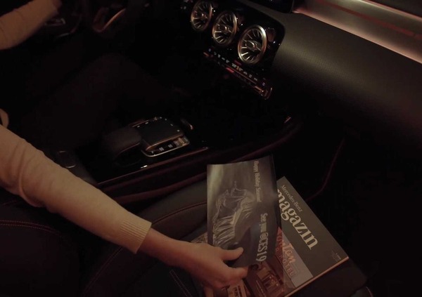 Anche gli interni sono mutuati da quelli della nuova Classe A, ma c'è una novità: un sensore illumina la zona del passeggero quando il conducente allunga la mano verso un oggetto.