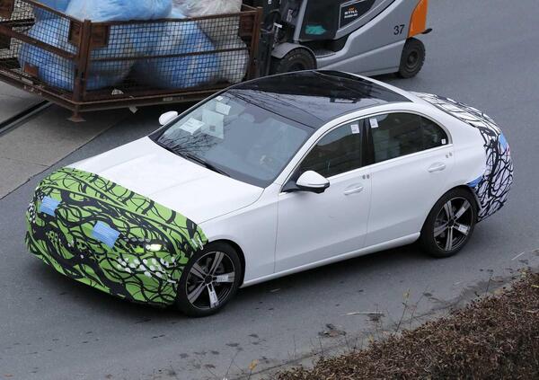 Le prime immagini dei prototipi camuffati svelano alcune delle modifiche estetiche che caratterizzeranno la nuova C-Class. Si notano aggiornamenti ai paraurti anteriori e posteriori, insieme a una nuova griglia. Anche i gruppi ottici subiranno modifiche, con grafiche interne riviste sia per i fari anteriori che per le luci posteriori. In linea con le altre vetture Mercedes, la C-Class adotterà luci diurne a LED che richiamano la forma del logo a tre punte del marchio, un dettaglio distintivo e raffinato.