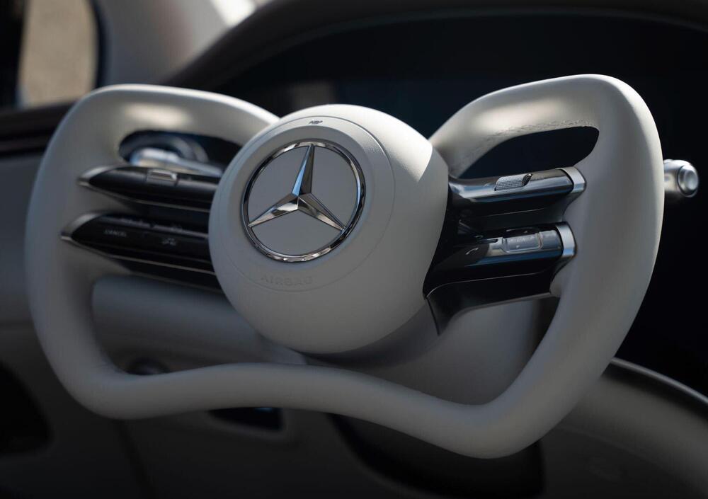 L’assenza del piantone tradizionale consente l’introduzione di un volante più compatto e appiattito, vicino per filosofia a un “yoke” aeronautico. Questa soluzione apre visivamente lo spazio davanti al conducente, migliora la visibilità del display strumenti e facilita l’accesso a bordo, rafforzando il tipico effetto “Welcome Home” dei modelli Mercedes di fascia alta.