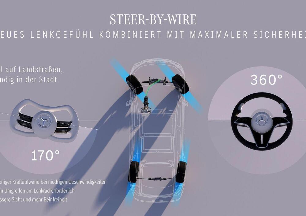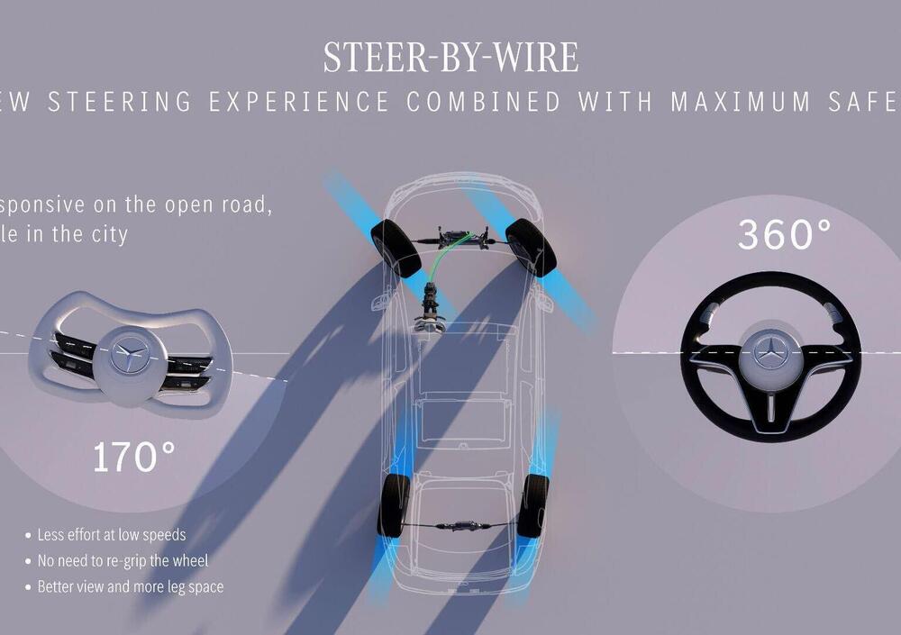 Mercedes-Benz ha quindi sviluppato una complessa architettura ridondante con doppio percorso di segnale, sensori multipli e centraline indipendenti, garantendo sempre la possibilità di controllare il veicolo anche in caso di guasto. Il sistema ha già superato oltre un milione di chilometri di test tra banchi prova, piste dedicate e traffico reale. In situazioni estreme, la stabilità direzionale può essere mantenuta tramite sterzo posteriore e interventi selettivi dell’ESP.