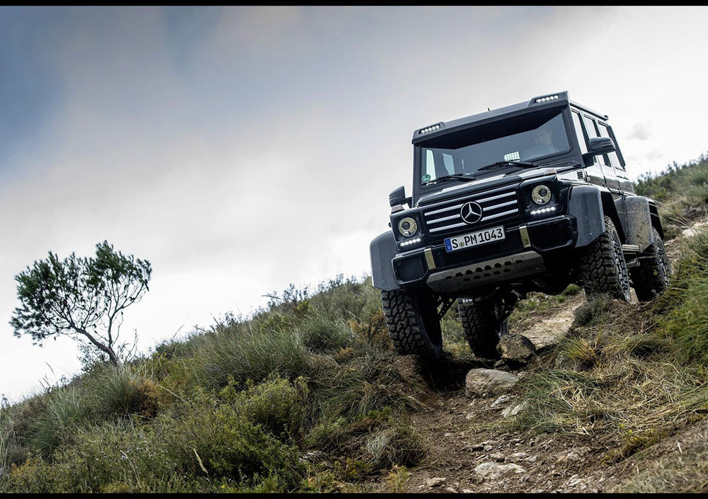 Svelato originariamente come una concept car nel corso dell'ultimo Salone di Ginevra a marzo, la G500 4x4² racchiude in sé molta della tecnologia della mastodontica G63 6x6, come il sistema permanente AWD, gli assali delle sospensioni a portale – ovvero con i semiassi di trasmissione ed i gruppi differenziali più alti dei mozzi ruota – una carreggiata più larga di 29.9 cm, due ammortizzatori per ruota e cerchi da 22”, che vestono pneumatici da 325/55. Ciò fa raggiungere alla G500 4x4² un'altezza da terra di 45 cm, con una capacità di guado che arriva al metro.