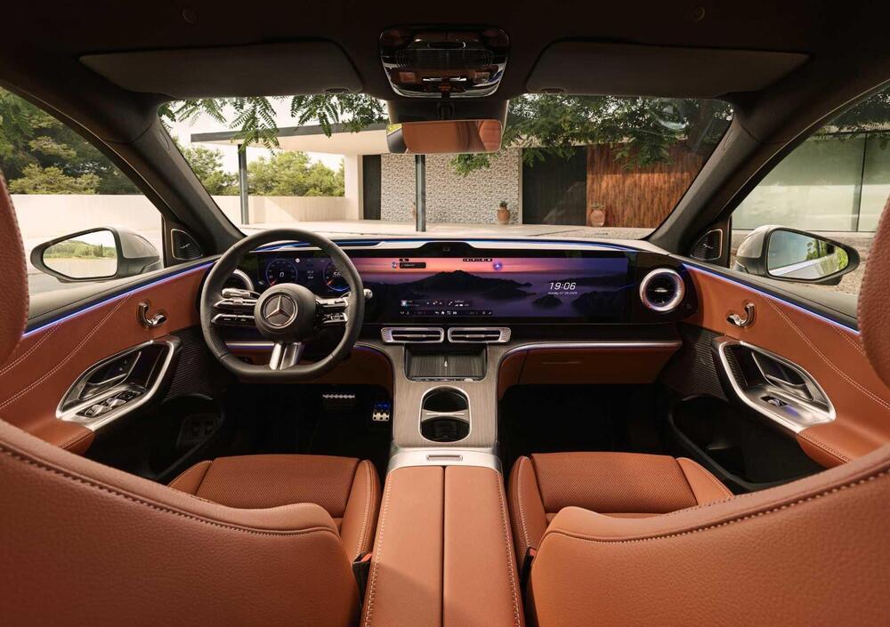 Sul fronte illuminazione ambientale, la striscia luminosa sul piano superiore del cruscotto incornicia l'abitacolo e si coordina cromaticamente con i motivi di sfondo selezionabili sul display. Inoltre, dopo le critiche passate, Mercedes risponde alle richieste dei clienti reintroducendo il comando a bilanciere per il limitatore di velocità e DISTRONIC, e la rotella per il controllo del volume (funzioni che erano state rimosse nelle generazioni precedenti).