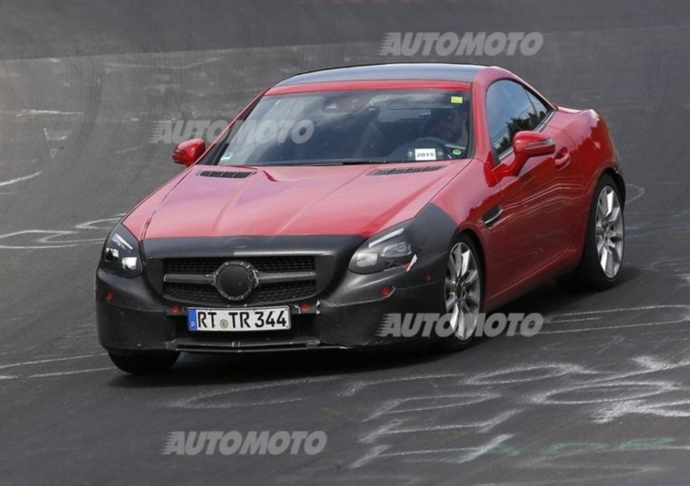 Quella che si aggira per il Nurburgring ritratta nelle nostre foto spia è il facelift di fine carriera della Mercedes SLK che potrebbe debuttare in settembre al Salone di Francoforte.