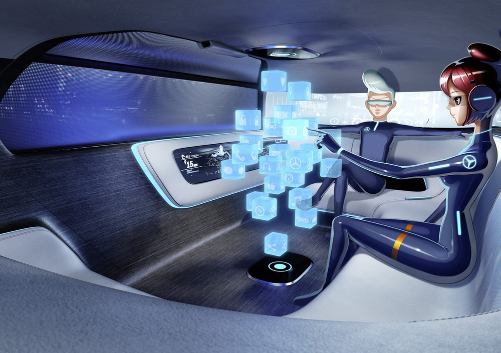 Mancano i finestrini, rimpiazzati da schermi LCD. L'auto è concepita per essere a guida autonoma – caratteristica raggiungibile grazie ad una serie di sensori collegati ad una telecamera installata sul tetto e funzionante a 360° - e gli interni, quindi, sono stati studiati appositamente per intrattenere gli occupanti. Non manca un proiettore olografico a 3D, grazie al quale è possibile essere interconnesso con la rete o con altri veicoli.