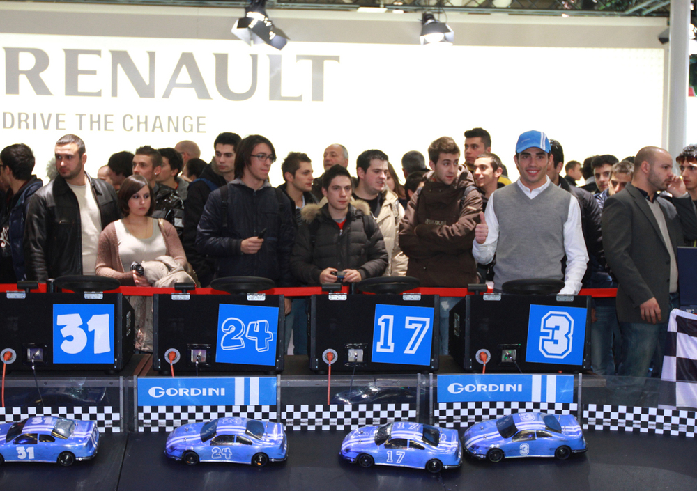 Una giornata all'insegna della passione sportiva per il pilota pugliese ed il suo pubblico più affezionato, che lo ha accolto numeroso sullo stand Renault. Il pilota venticinquenne ha sfidato i presenti in divertenti contest organizzati intorno alla pista radiocomandata Gordini, allestita con modellini rivestiti della leggendaria livrea Blu Malta a fasce bianche.