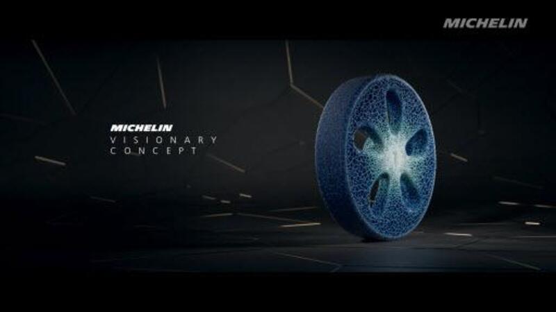 La strategia delle 4R Michelin si materializza, nel vero senso della parola, con la gomma Concept Vision che i tecnici del Bibendum pensano di riuscire a lanciare sul mercato entro una quindicina d'anni: le 4R, che corrispondono a Ridurre, Ri-usare, Rinnovare e Riciclare si ritrovano in questa gomma stampata in 3d alle voci battistrada (c'è solo la gomma necessaria, visto che si può "ricaricare") materiali utilizzati, capacità di essere riciclate in modo più efficace rispetto a quelle attuali.
