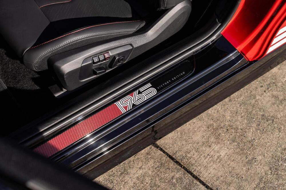 All’interno, la 1965 Victory Edition non tradisce le sue origini: materiali di qualità con tonalità scure e dettagli rossi richiamano il carattere sportivo, mentre i tocchi dedicati al rally storico si trovano in ogni angolo dell’abitacolo. Sulle soglie dei battitacco campeggia la grafica “1965”, integrata a pannelli con finiture rosso-nero, mentre sui pannelli porta compare una dedica alla vittoria di Monte Carlo.