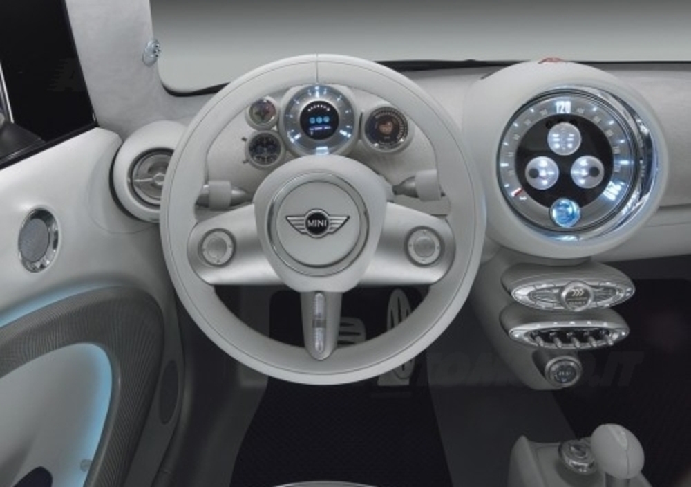 Diversi i dettagli che sottolineano lo spirito sportivo della vettura (la concept esposta, tra l’altro, poteva contare sul propulsore della Cooper S), dai passaruota in bella evidenza agli scarichi laterali di generose dimensioni.