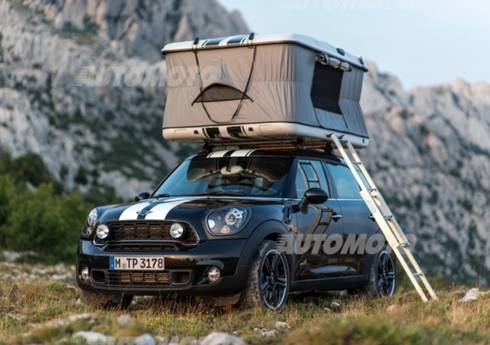Mini Countryman ALL4 Camp: è dotata di una tenda a soffietto sul tetto che in marcia si può richiudere in un guscio. La tenda è accessibile grazie a una scala esterna e può ospitare due persone.
