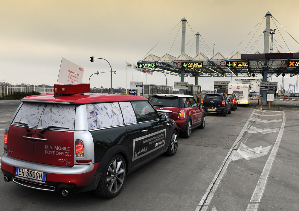 Come sempre, la carovana ha avuto nella Mini Clubman, trasformata in ufficio postale mobile, il suo dinamico e simpatico capogruppo che, anche ieri, ha “fatto il pieno” di letterine scritte dai bambini da consegnare a Santa Claus. Il viaggio è proseguito all’interno della Foresta Nera tedesca, su su verso il nord della Germania, fino al porto di Rostock, per un totale di 657 chilometri percorsi. Il vento ha contribuito ad esaltare la spettacolare visuale delle pale eoliche in movimento.