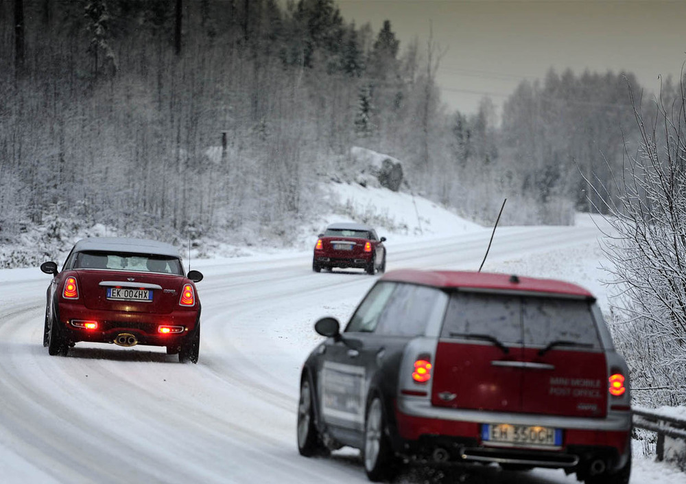 Il team è poi ripartito domenica mattina da Stoccolma sotto la pioggia dopo un passaggio da piazza Gamla Stan, sede del museo del premio Nobel. Passando da un’isola all’altra dell’arcipelago di isole che compone la capitale svedese, la carovana ha imboccato l’autostrada E4 alla volta di Umea. Ben presto le temperature si sono adeguate alla latitudine passando dagli 11 gradi di Stoccolma allo zero, trasformando la pioggia in neve ad imbiancare le strade ed il paesaggio sempre più in sintonia con lo spirito natalizio che anima la spedizione Mini Goes to Rovaniemi.