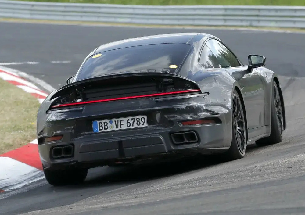 Osservando il prototipo, il dubbio è legittimo: sembra una 911 Turbo, ma con un carattere molto più sobrio. L’assenza dell’enorme alettone fisso, sostituito da uno più piccolo simile a quello della 911 Carrera, cambia radicalmente il profilo posteriore. Anche le prese d’aria sui parafanghi posteriori, tipiche della Turbo, risultano assenti.