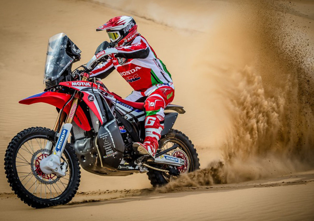Il più veloce di tutti è, manco a dirlo, Joan Barreda, prima guida del Team Honda HRC, che prende il volo imponendo un’andatura infernale. Gli resiste il solo Toby Price, astro nascente del Team KTM ma, non fosse per un piccolo, per fortuna trascurabile problema al Road Book, Barreda avrebbe senz’altro fatto il vuoto alle sue spalle.