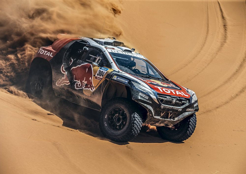 Il destino del debutto della nuovissima 2008 DKR sembra dipingersi di sorrisi, ma nell’ultimo tratto della prova i colpi di scena arrivano a raffica, falcidiando nel gran finale senza ritegno. La Speciale cambia fisionomia. Sainz distrugge una ruota a 15 chilometri dall’arrivo, si ferma a sostituire e a rimettere a posto il “moncone”. Sono almeno tre minuti sparsi nelle sabbie del deserto. Al-Attiyah buca addirittura due volte. Fa presto a cambiare in entrambi i casi, ma sono altre mitragliate di secondi. Loeb si ferma a 35 chilometri dalla bandiera a scacchi. Un manicotto saltato, pare, il motore si arresta e per il fuoriclasse del WRC, subito ad un passo dal clamore anche in questa specialità, finisce al traino e ripartirà nella Open Class.