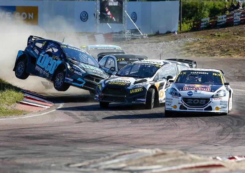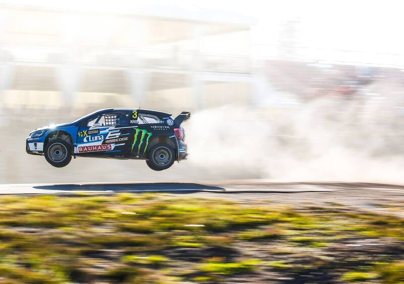 Johan Kristoffersson sale sul tetto dalla Polo, poi sul gradino più alto del Podio di Holjes. Lo seguono poco dopo Andreas Bakkerud e Sébastien Loeb.