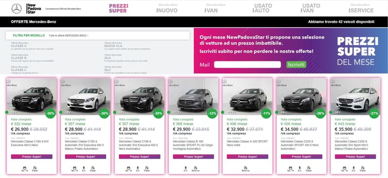 Quanti di voi hanno intenzione di comprare una nuova auto? E quanti di voi, per farlo, hanno deciso di consultare le pagine del nostro sito, o quelle di un concessionario? Se siete alla ricerca di una iniziativa davvero particolare, vi suggeriamo di dare un’occhiata alle proposte di NewPadovaStar, concessionaria ufficiale Mercedes-Benz che permettere di opzionare una delle proprie vetture in offerta, attraverso il versamento di una piccola somma, anche via Paypal. L’iniziativa è associata all’appuntamento mensile “Prezzi Super”, grazie al quale è possibile acquistare i migliori modelli Mercedes, con promozioni particolarmente interessanti.