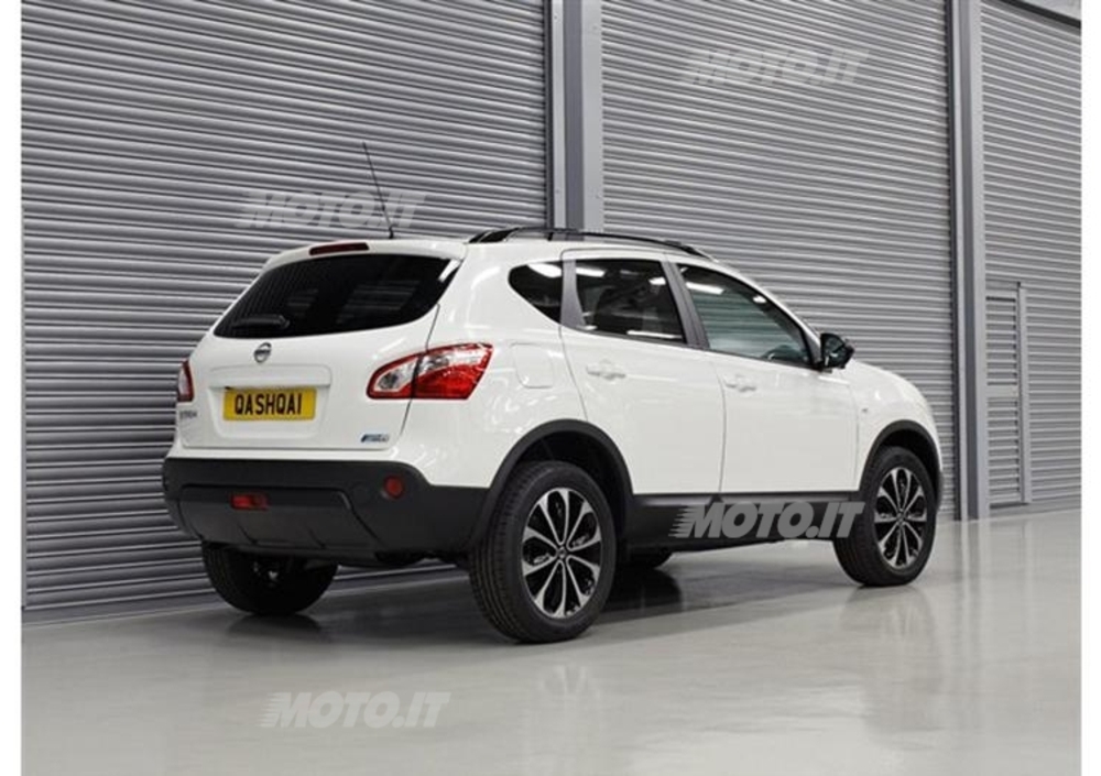Esteriormente il Nissan Qashqai 360 è riconoscibile per via di una serie di particolari dedicati, tra cui le barre del tetto e le calotte degli specchietti in nero lucido, tonalità quest’ultima ripresa anche dai cerchi in lega da 18", oltre che per il tetto panoramico e per i vetri oscurati, mentre la carrozzeria si tinge dell’inedito colore Pearl White.