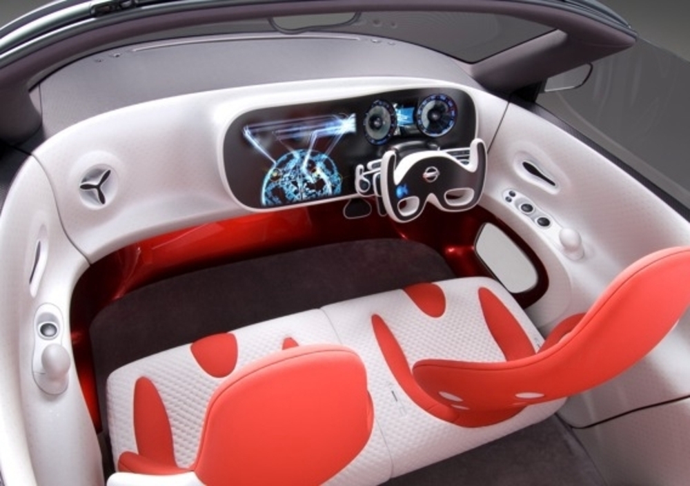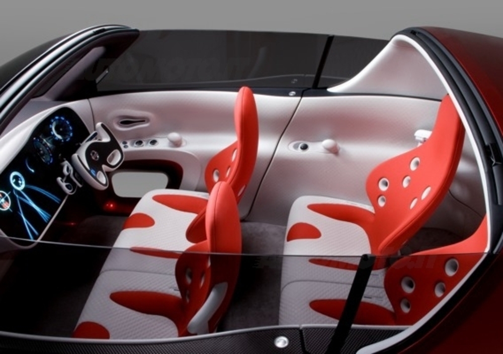 Di grande effetto sono anche i sedili: quelli anteriori, sportivi, hanno schienali distanziati per facilitare la comunicazione con gli occupanti di coda, mentre il divanetto posteriore nelle intenzioni dei progettisti crea un’atmosfera da “salottino”.