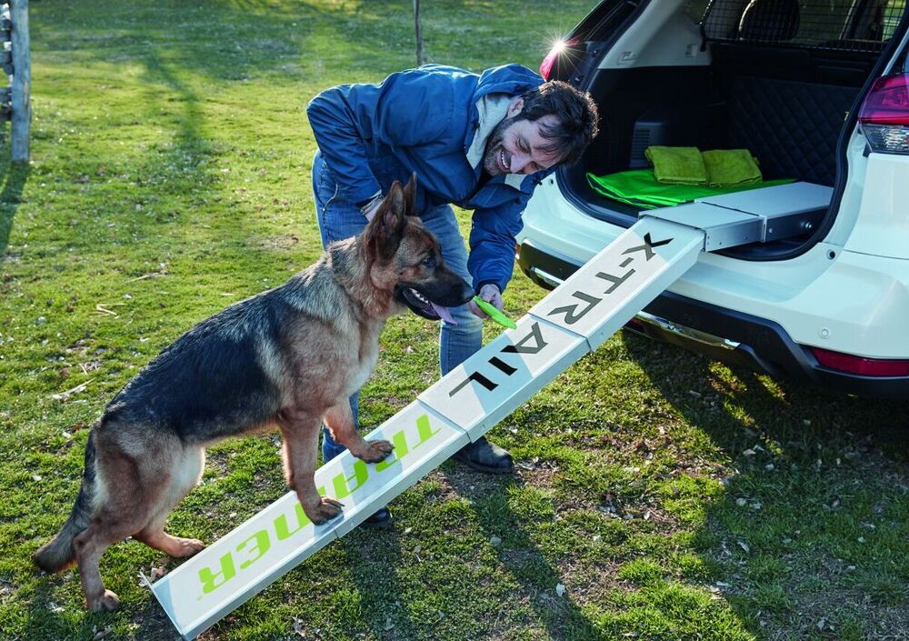 Nissan X-Trail Trainer è equipaggiata con un kit composto da una comfort area con rivestimento del bagagliaio in ecopelle comodo e antiscivolo per i cani e facile da pulire, una griglia divisoria tra bagagliaio e abitacolo, una rampa telescopica per facilitare la salita a bordo utile soprattutto per cani di taglia medio/grande, una doccia per rimuovere rapidamente e facilmente terra o fango dal pelo e dalle zampe del cane dopo passeggiate in campagna e prima di salire a bordo, un telo impermeabile su cui il cane può sostare durante la doccia e un un kit asciugatura per tamponare il pelo del cane prima di risalire a bordo.