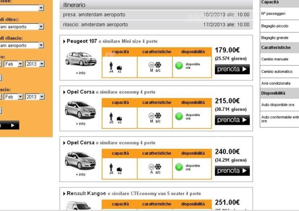 stavo per prenotare una macchina a noleggio per una breve vacanza in Olanda sul sito del broker internazionale 'Holiday Autos'. E cosa vedo? I prezzi sulla pagina italiana del sito sono notevolmente più alti rispetto a quelli sulla pagina olandese. Stesso periodo, stessa macchina.
