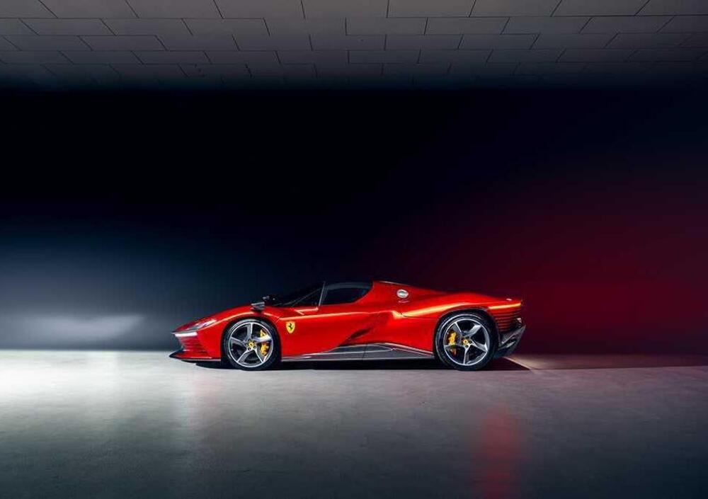 Accanto, una Ferrari che parla una lingua speciale: la Daytona SP3 rifinita nell’unico Rosso Deborah. È il simbolo della nuova grammatica del classico — V12 aspirato, personalizzazione estrema, tiratura limitata — tutto ciò che rende “da collezione” un’auto più vicina al 2020 che al 1970. Il dettaglio cromatico non è folklore: è storytelling certificato, capace di aggiungere desiderabilità reale.