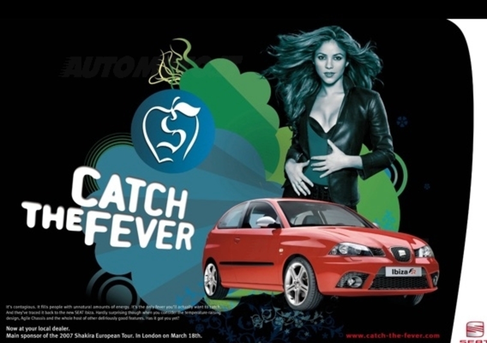 Il claim “Catch the Fever” farà da ponte fra i due marchi (Shakira e SEAT) in combinazione con il logo appositamente creato, una “S” maiuscola. Questi, assieme ad una campagna molto vivace e minuziosamente disegnata, costituiscono uno sfondo perfetto per presentare Shakira nella pubblicità della SEAT come ambasciatrice del Marchio.