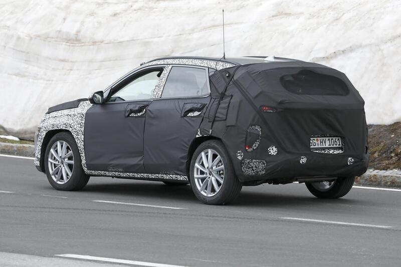 Nella parte della fiancata è difficile trovare le novità, ma sembra che il passo sia più lungo rispetto all’attuale Kona, stessa cosa vale per la parte posteriore, troppo poco visibile.