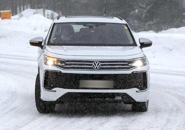 La nuova Volkswagen Tayron dovrebbe essere svelata nel 2025 e, come la nuova Tiguan e Passat, il nuovo Suv dovrebbe poggiare sulla piattaforma MQB Evo.