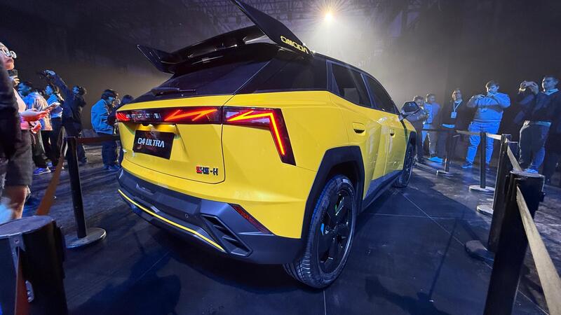 La nuova Omoda 4 Ultra mantiene i 440 Cm di lunghezza della versione "stradale", ma è stato modificato l'aspetto per renderla più sportiva e accattivante. La parte anteriore rimane pressochè inviariata, ma stando alle prime immagini provenienti direttamente dalla Cina sembra che sia stato aggiunto uno splitter più grande. Al posteriore, invece, le modifiche sono più evidenti (e anche più orientali): grande spoiler con degli enormi endplate all'etremità e un paraurti che integra dei finti sfoghi d'aria.
