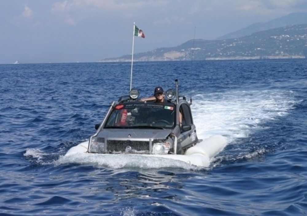 E' da quasi un anno che questo prototipo su base fiat Panda, ideato dal vulcanico Maurizio Zanisi, si fa vedere per pochi istanti in alcune delle più belle spiagge italiane per poi...tuffarsi in acqua e prendere il largo.