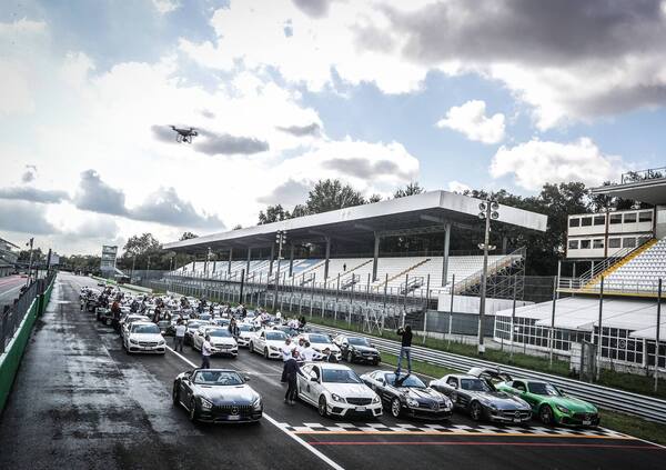 Una ampia selezione di immagini scattate a metà settembre 2017 durante il finesettimana che ha festeggiato in pista a Monza il compleanno numero 50 di AMG. Tutti i modelli della gamma attuale e alcune rare chicche dal passato, lungo il tracciato e nel paddock del circuito più famoso nel mondo. Le stupende AMG GT regine di prestazione e fascino sportivo, ma non solo loro, per il pubblico di appassionati e possessori che hanno girato liberamente nel Tempio della Velocità.