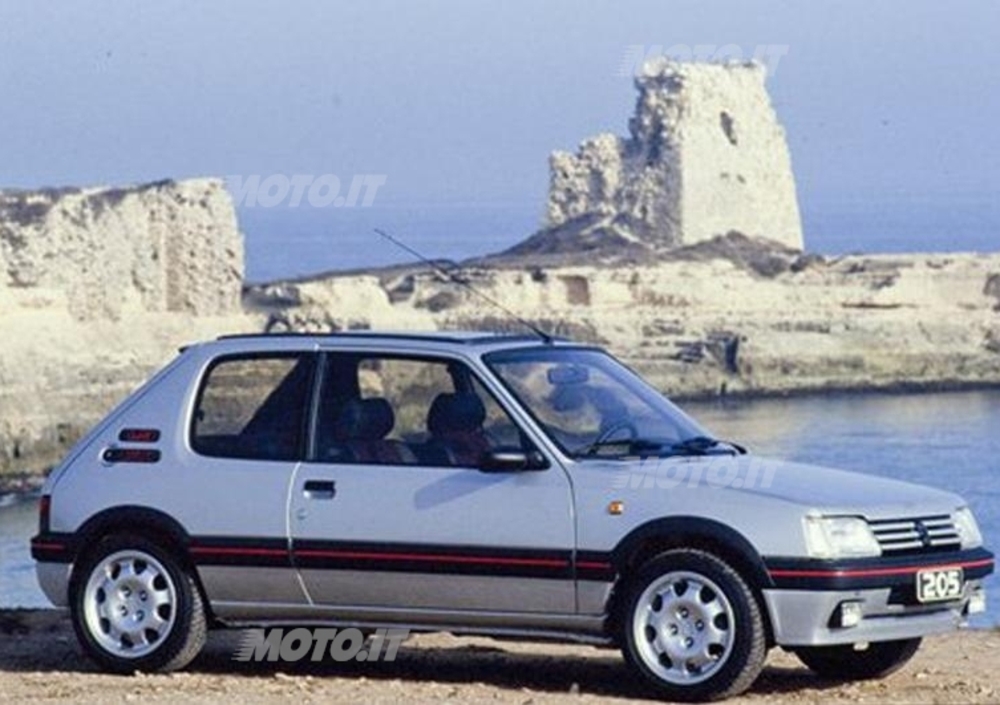 Presentata nei primi mesi del 1984, la 205 GTI era equipaggiata inizialmente con un motore da 1.600 cm3 e 105 CV; nel 1986 venne affiancata dalla versione 115 CV. Nello stesso anno fu presentata la versione con motore da 1.900 cm3 con 130 CV, che accelerava da 0 a 100 km/h in 7,8 secondi per 206 km/h di velocità, identificata dai cerchi maggiorati da 15” e dalla scritta “1.9” sui fregi dei montanti posteriori.