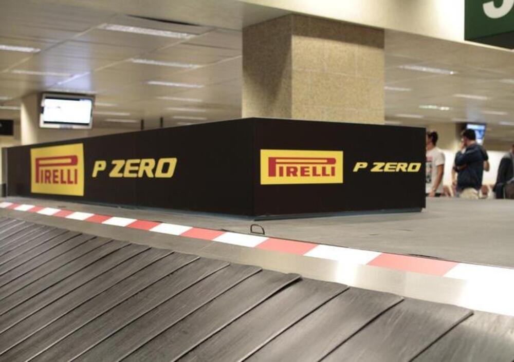 Molti passeggeri in arrivo all'aeroporto di Malpensa durante la settimana che ha preceduto il GP di Monza, tra cui noi, si saranno accorti della curiosa attività di marketing che ha visto protagonista Pirelli nell'area ritiro bagagli.