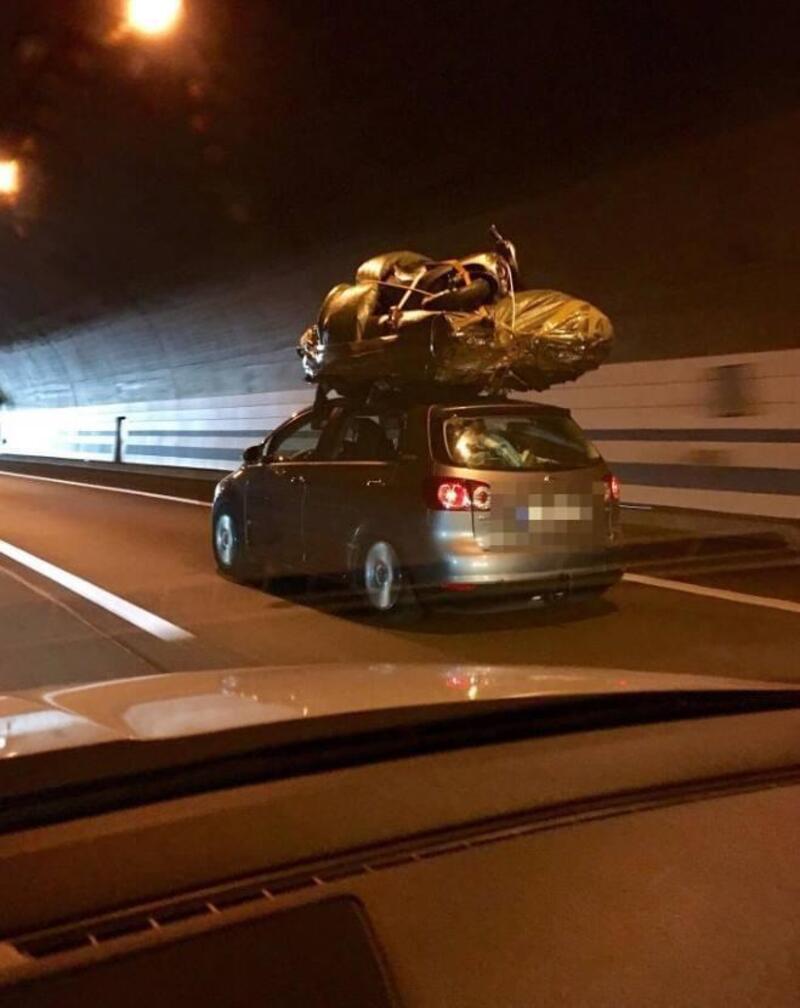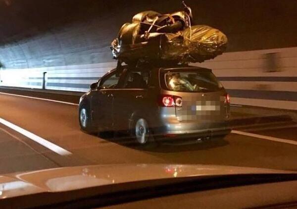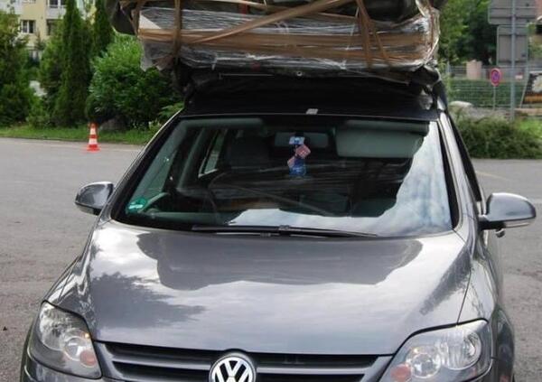 L'automobilista tedesco, fermato sull'autostrada A2 ieri mattina, aveva persino uno scooter sul tetto del suo veicolo. La stima di carico è 408 chili sul tetto, 174 chili nel bagagliaio e 201 chili dentro l'abitacolo.