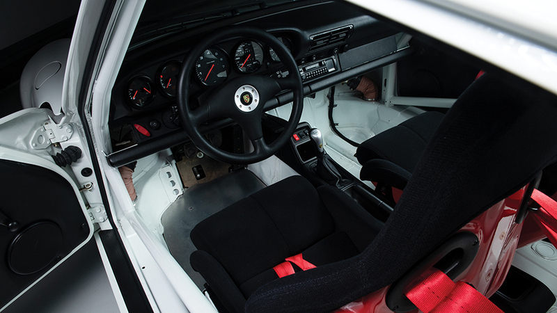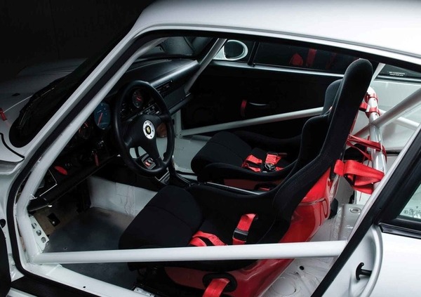 L’abitacolo è dotato di una roll-bar completa, sedili racing Recaro con cinture di sicurezza da pista Schroth, volante 930S e cerchi in lega da pista, ovvero tutto il necessario per correre.