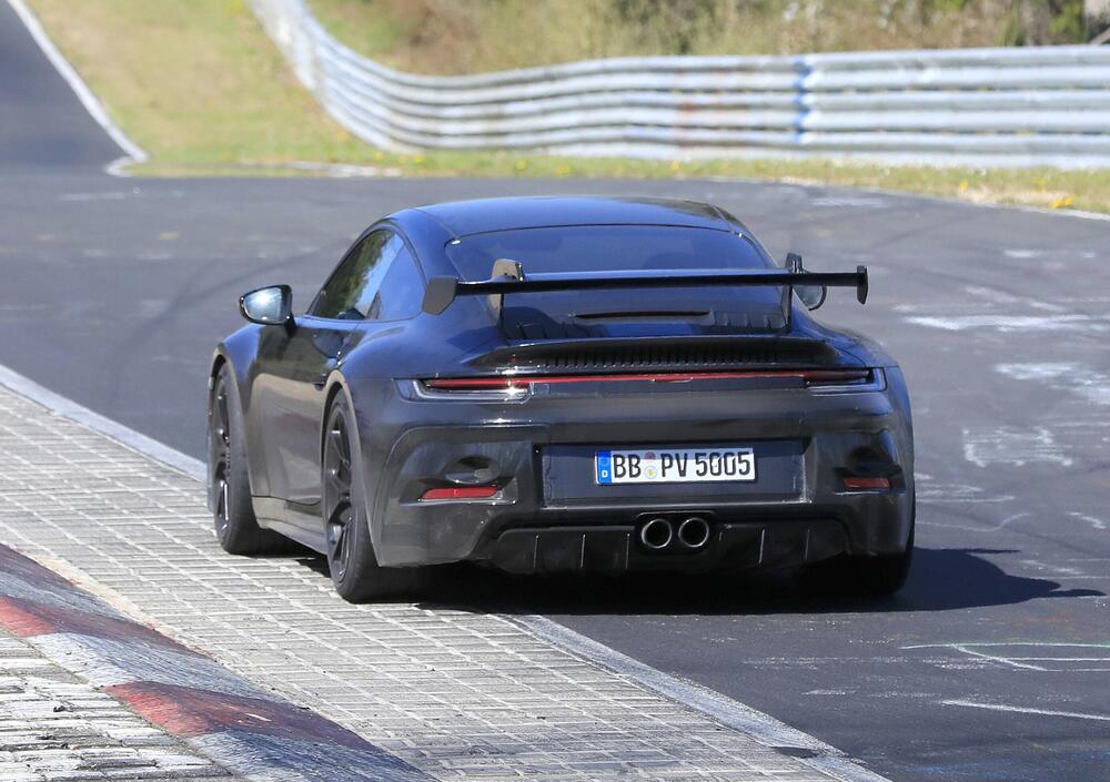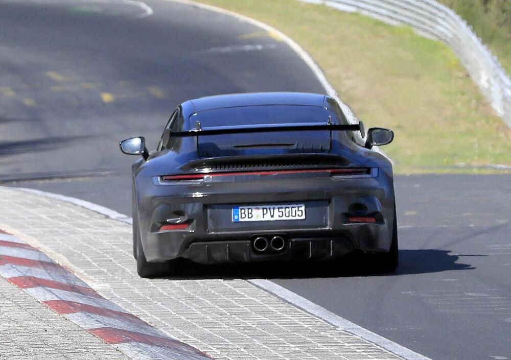 Insomma una 911 che gioca duro sull'emozione e lo fa migliorando ogni aspetto, in particolar modo il telaio (nel passaggio dalla 991 alla 992 dovrebbe esserci un alleggerimento) che permetterà alla vettura di portare con sé più elementi di sicurezza a fronte di un peso di poco inferiore ai precedenti 1.430 kg con il cambio PDK e 1.413 con il manuale a sei marce. Cambia anche l'ala posteriore con un attacco superiore che fa molto DTM ed è molto in voga nelle ultime produzioni sportive delle Case tedesche.