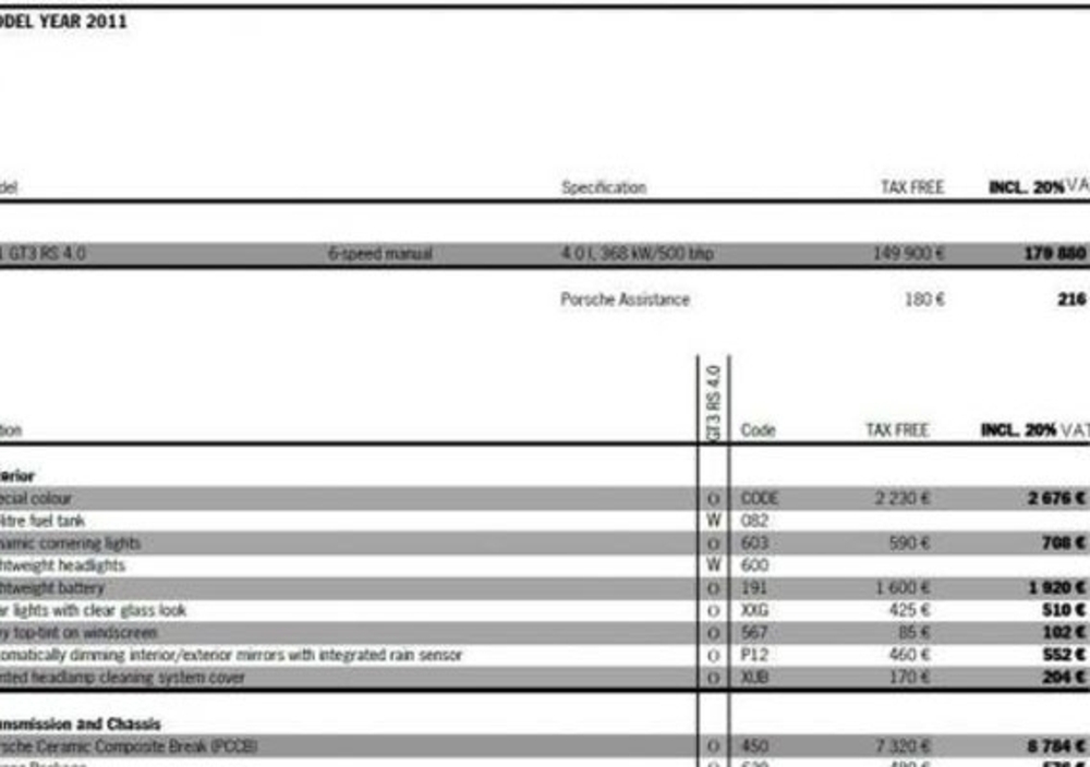 Di fatto, la recente "scoperta" di un listino di accessori legato alla nuova Porsche GT3 RS 4.0 fa ben sperare nei confronti della commercializzazione di una vettura che dovrebbe rappresentare il canto del cigno di una delle 911 più riuscite di sempre: la 997.