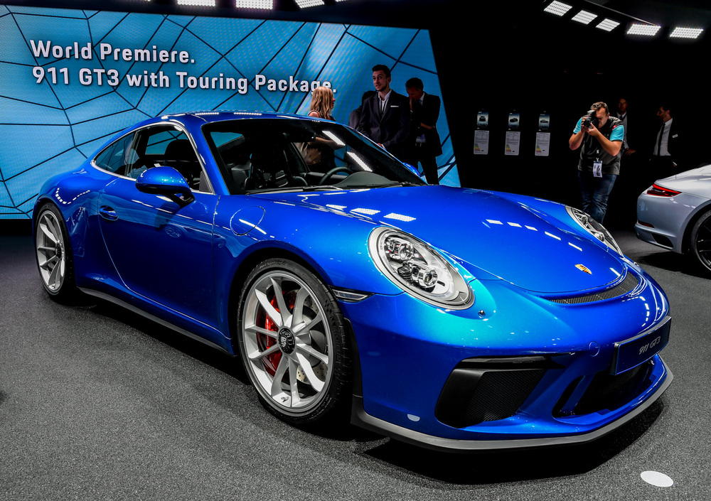 A fare bella mostra di sé al Salone di Francoforte 2017 c'è anche una versione inedita della 911 GT3. Il pacchetto, chiamato Touring, vede l'assenza dell'alettone posteriore, sostituito da uno spoiler di dimensioni decisamente più contenute, simile a quello della 911 Carrera.
