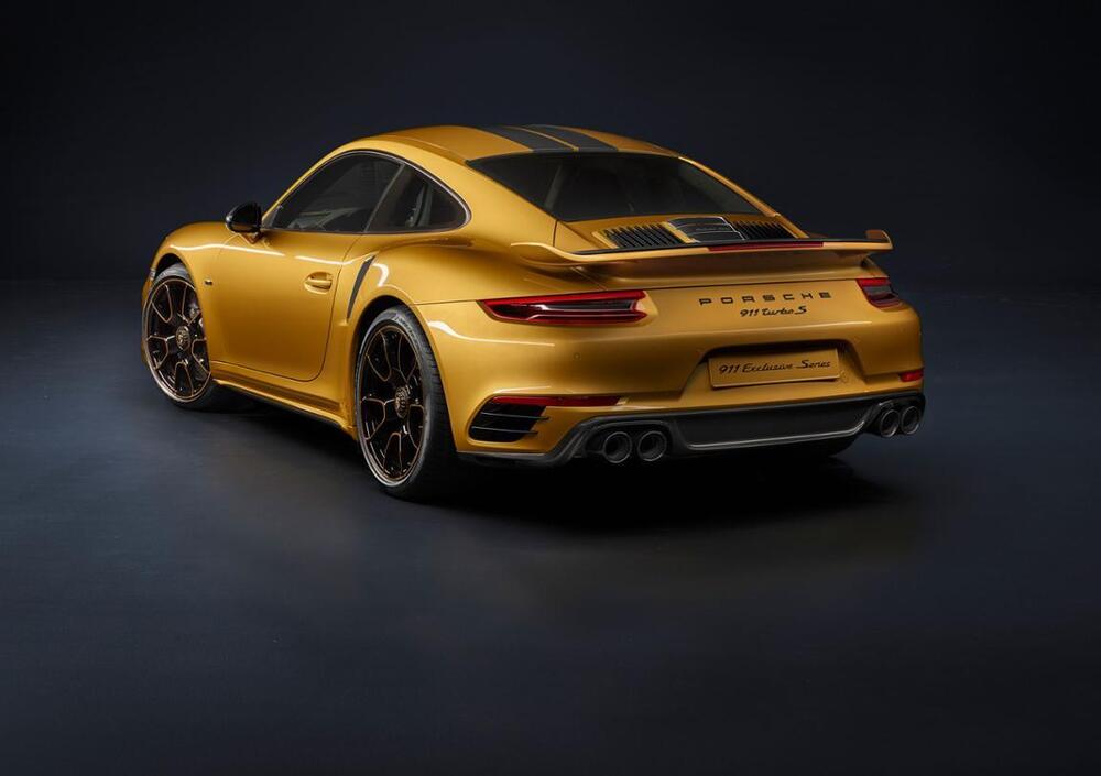 Ma il potenziamento del motore non è l'unica caratteristica della Porsche 911 Turbo S Exclusive Series: realizzata dal reparto Porsche Exclusive Manufaktur di Zuffenhausen, il ramo di Porsche responsabile delle personalizzazioni e delle serie speciali, la vettura si caratterizza per la tinta metallizzata “Golden Yellow” dalla quale fa capolino la fibra di carbonio, materiale con cui sono realizzati il cofano e il tetto. La vista posteriore si distingue inoltre per l'ala, lo scoop in carbonio e il doppio scarico in nero.