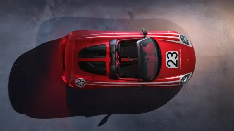 All’interno, l’abitacolo è stato rivisto con Alcantara rossa personalizzata, impiegata su sedili, pannelli porta, plancia e persino nel vano bagagli anteriore, dove è presente anche una valigeria su misura coordinata con la livrea esterna. Il richiamo visivo alla 917 è forte ma reinterpretato con materiali moderni e sofisticati di alta gamma.